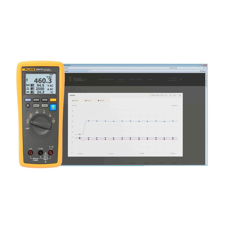 更好的是,Fluke 3000 FC 系列无线万用表能够向您的智能手机发送测量数据,使您能够随时随地保存从现场传回的测量数据并与您的团队共享。